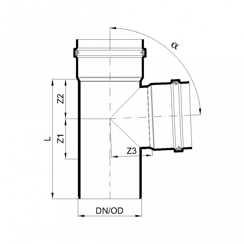 POLO-KAL Тройник канализационный 87,5° 250/250 P2980