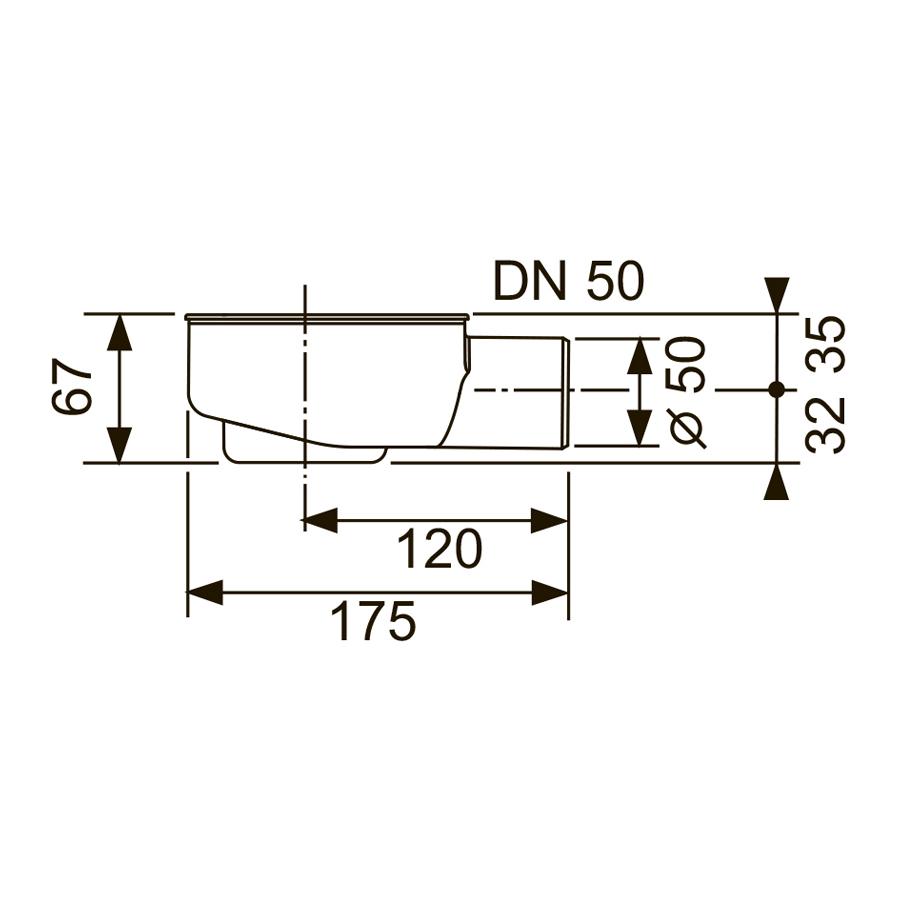 - Сифон DN 50, боковой слив. Установочная высота 95 мм.