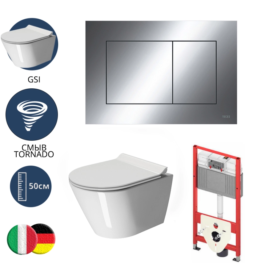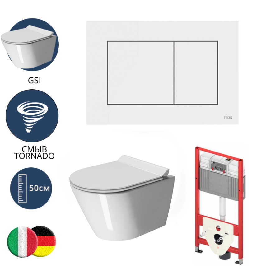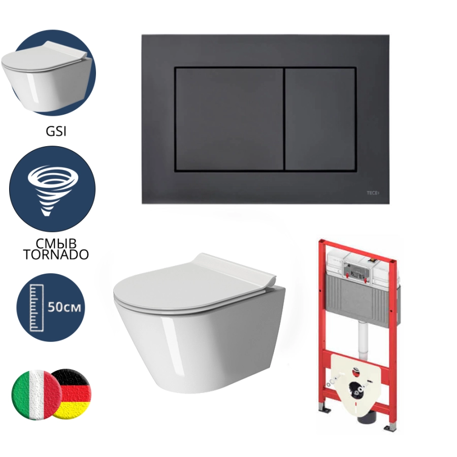 TECE TECEnow Комплект TECEbase 2.0 для установки подвесного унитаза с черной матовой панелью смыва TECEnow, унитазом GSI, сиденьем и крепежом черный матовый 10095014