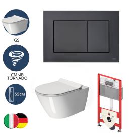 TECE TECEnow Комплект TECEbase 2.0 для установки подвесного унитаза с черной матовой панелью смыва TECEnow, унитазом GSI, сиденьем и крепежом черный матовый 10096014