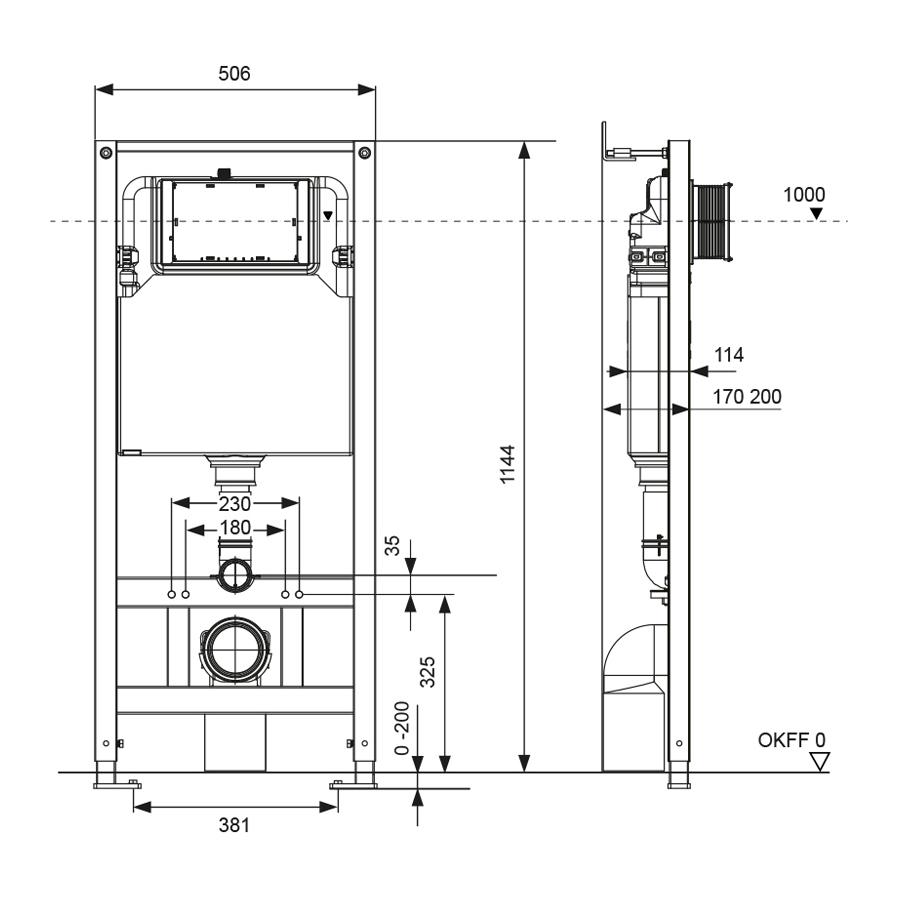 - Высота застенного модуля, мм 1144