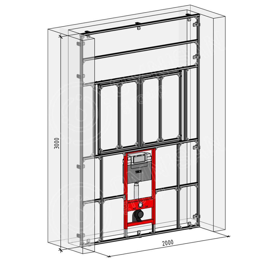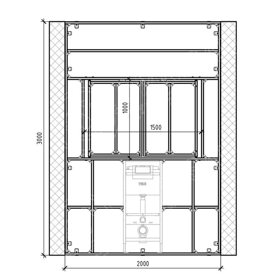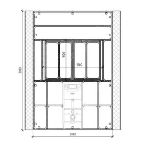 Uranum Format interior Комплект профильной системы с двумя распашными люками с установкой между двух несуших стен с возможностью интеграции застенного модуля (Инсталляции) 3000x1000мм URFI003SET