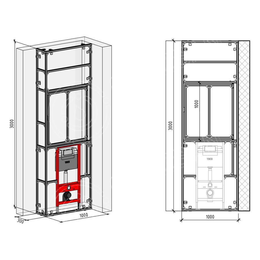 Размеры конструкции: высота 3000 мм, ширина 1000 мм, глубина 300 мм*