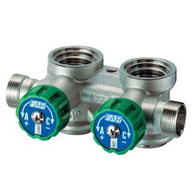 FAR Коллектор параллельный регулируемый с правым магистральным каналом с 2 отводами 3/4"-1/2",плоское уплотнение для холодной воды FK 3753 C34