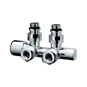 FAR LadyFAR TOPFAR Н-образный угловой узел для одно-и двухтрубных систем с термостатическим и запорным клапанами 1/2"-M24×19 НР серебро FL 0264 C12