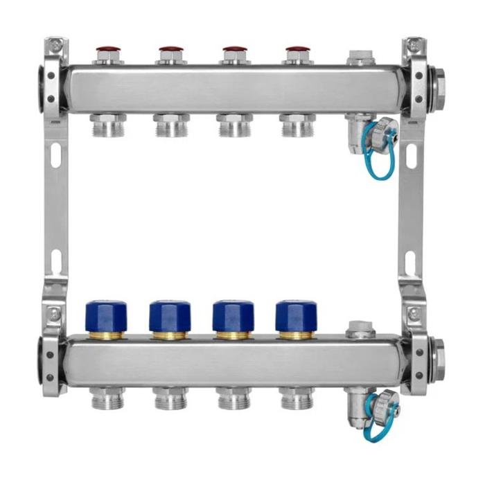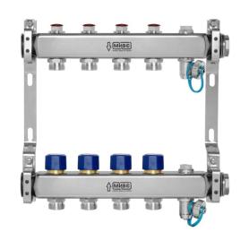МИВС HH232A Коллекторная группа из нержавеющей стали с запорно-балансировочными клапанами термостатическими клапанами воздухоотводчиками и дренажными кранами на 4 отвода HH232A04
