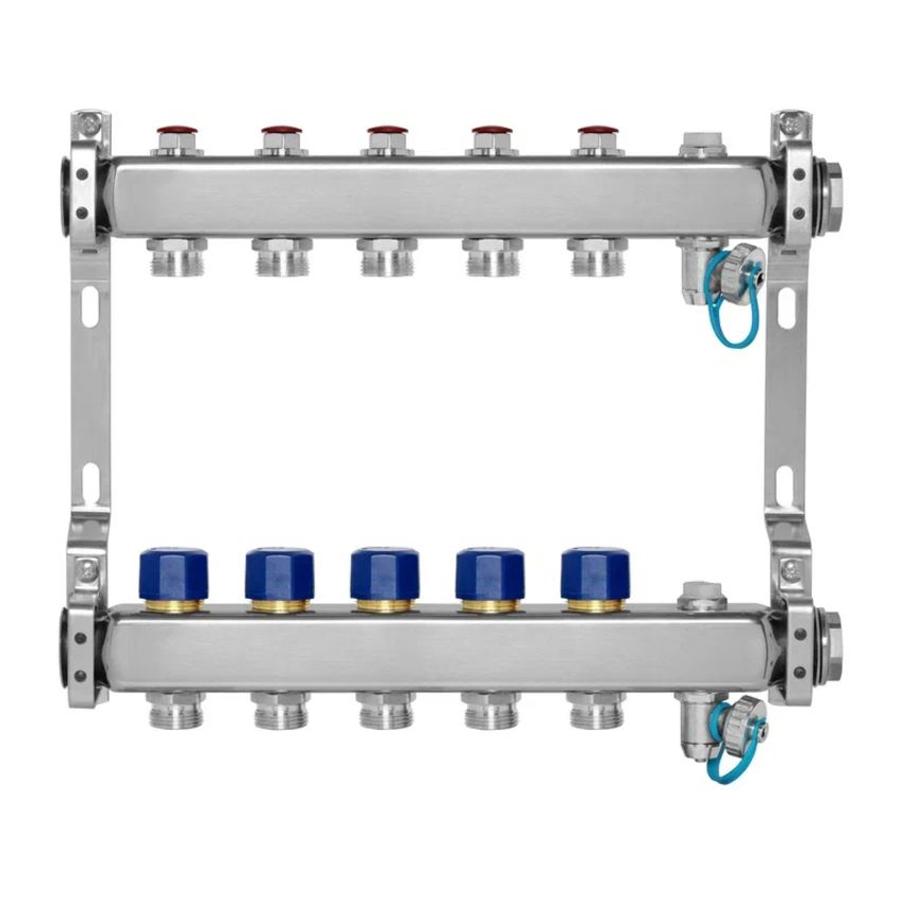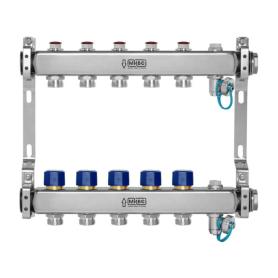 МИВС HH232A Коллекторная группа из нержавеющей стали с запорно-балансировочными клапанами термостатическими клапанами воздухоотводчиками и дренажными кранами на 5 отводов HH232A05