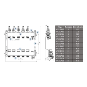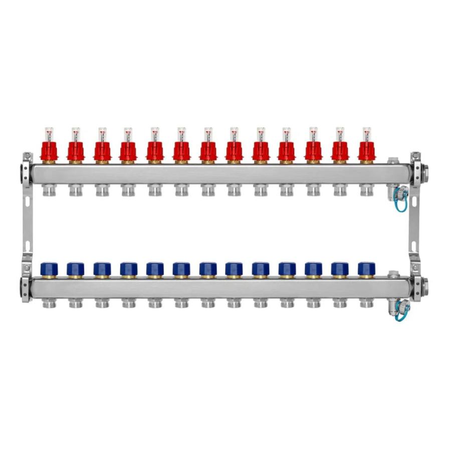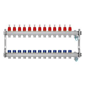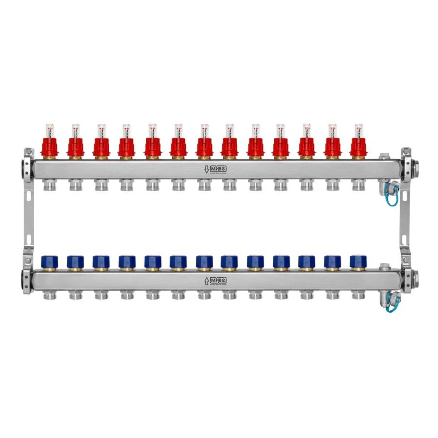 МИВС WF212A Коллекторная группа из нержавеющей стали с расходомерами САМ Crescini, термостатическими клапанами, воздухоотводчиками и дренажными клапанами на 13 отводов WF212A13