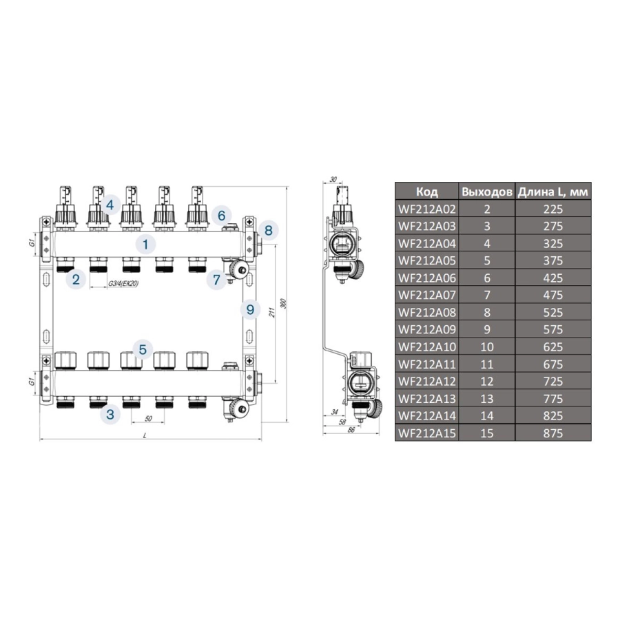 Коллекторные группы выпускаются с количеством выходов от 2 до 16. Количество выходов зависит от количества потребителей (контуров отопления или водоснабжения).