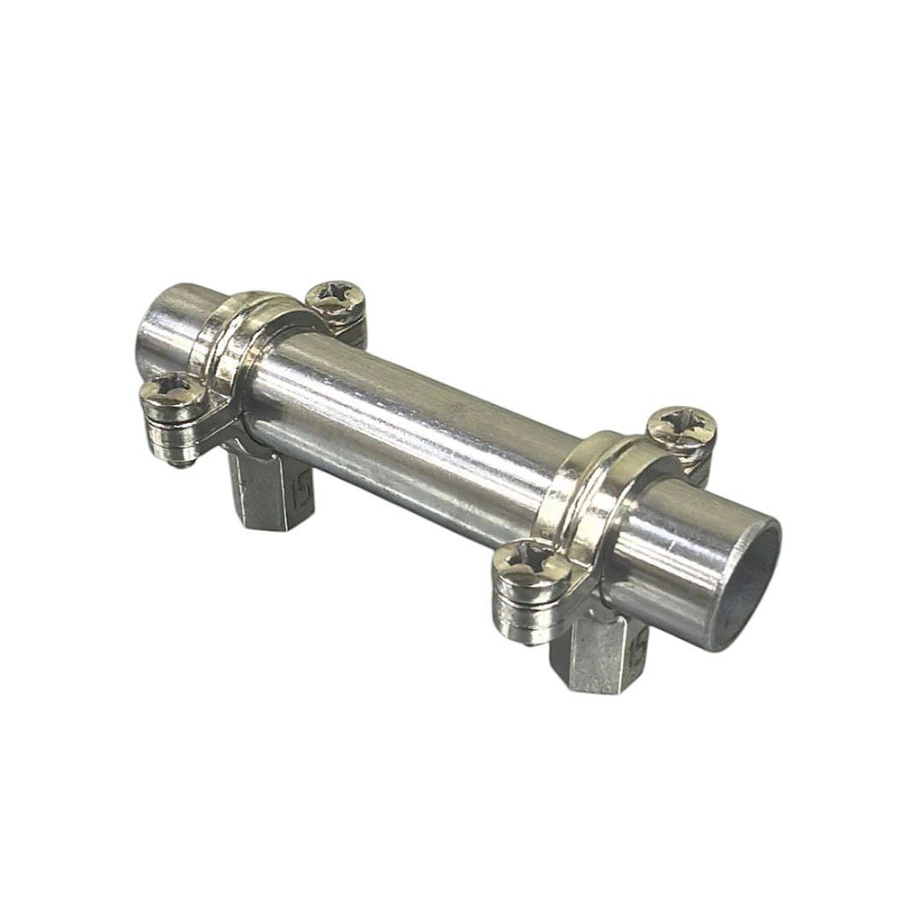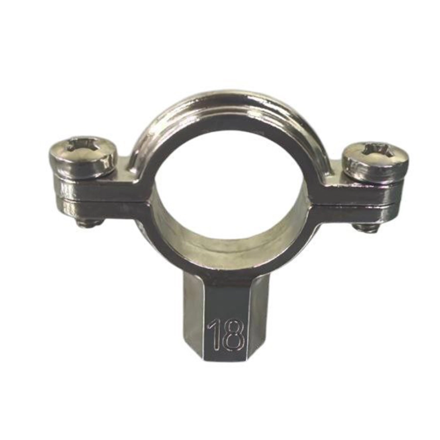 Хомут диаметр 18 мм покрытый никелем, для фиксации нержавеющей трубы. С втутренней резьбой для шпильки 8 мм. Материал сплав цветных металлов.
