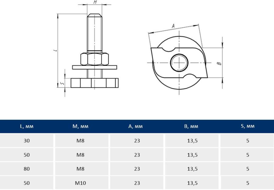 Taners Болт быстрого монтажа М8х50 TN.0122.000.008.0050.S