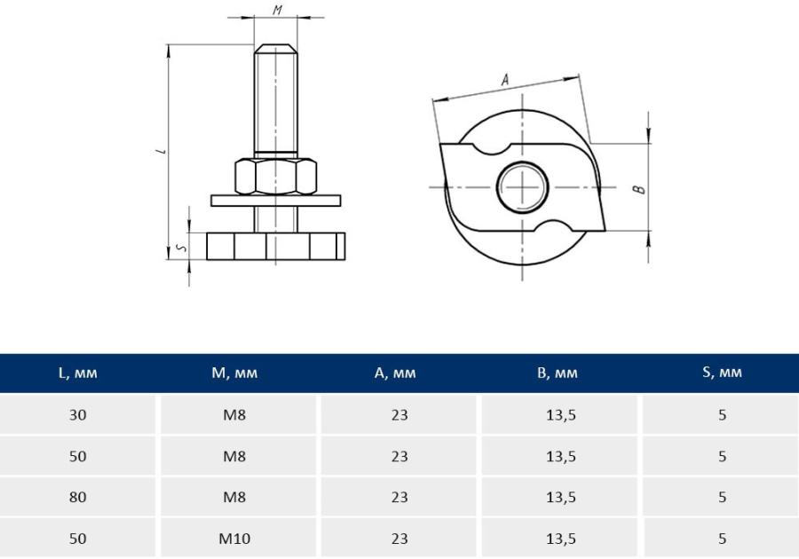 Taners Болт быстрого монтажа М8х80 TN.0122.000.008.0080.S