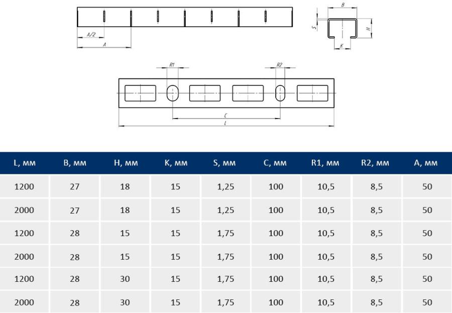 Taners Профиль монтажный 27х18х1200 TN.0710.027.018.1200.S