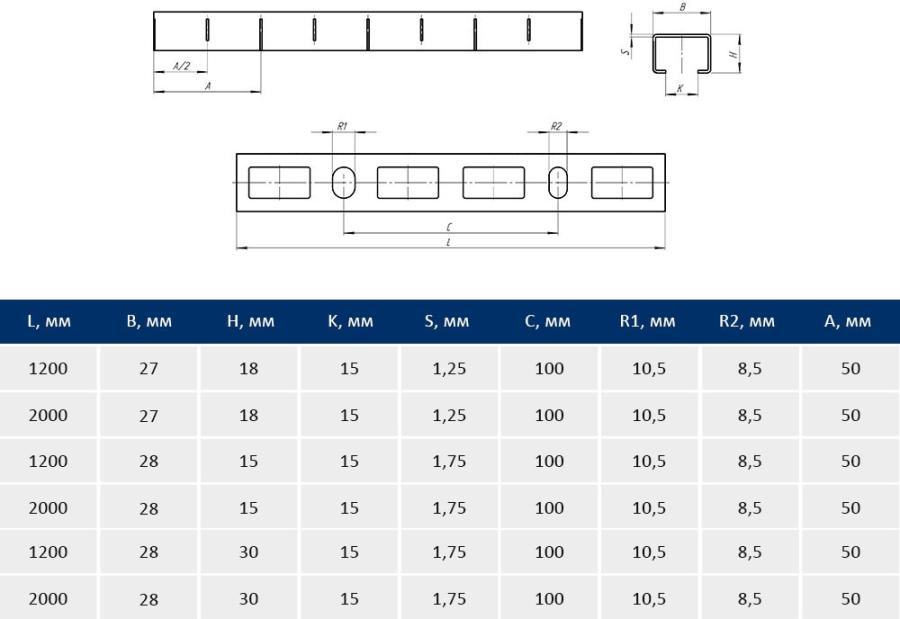 Taners Профиль монтажный 28х15х1200 TN.0720.028.015.1200.S