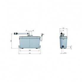Откачивание всех стоков данным санитарным насосом происходит по принципу принудительной напорной канализации по тонкой напорной трубе диаметром 32 мм. Насос, мощностью 400 Вт откачивает грязные стоки до 5 м по вертикали и до 50 м по горизонтали.