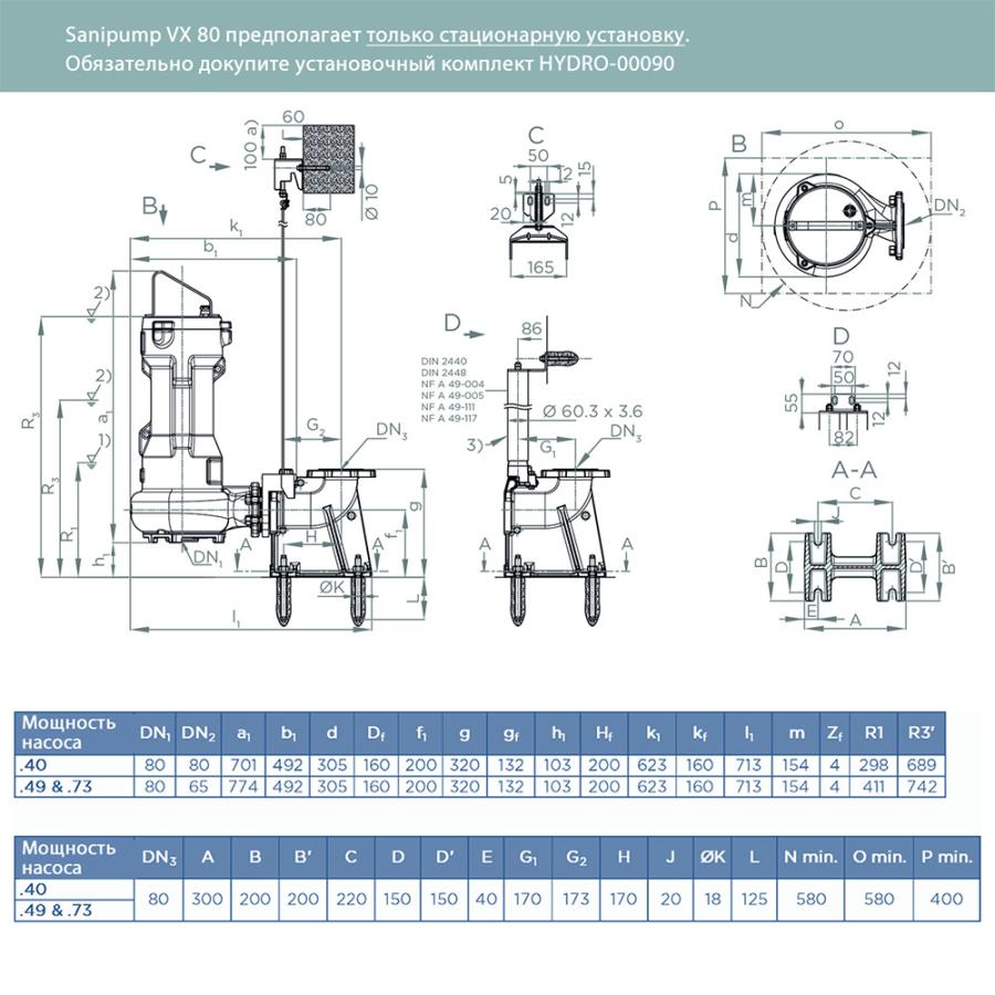Sanipump VX 80 — погружные насосы из чугуна, предназначенные для подъема сточных и дождевых вод на максимальную высоту до 35 м.