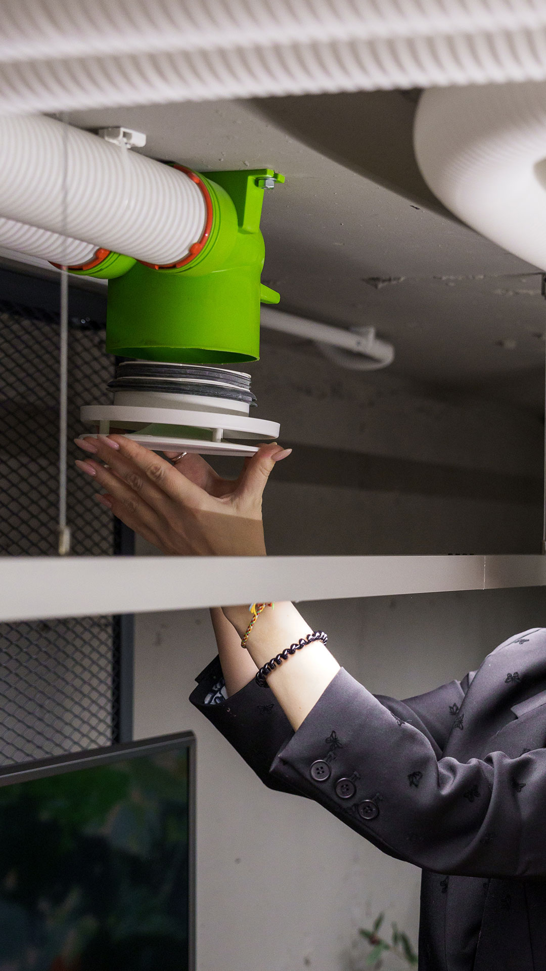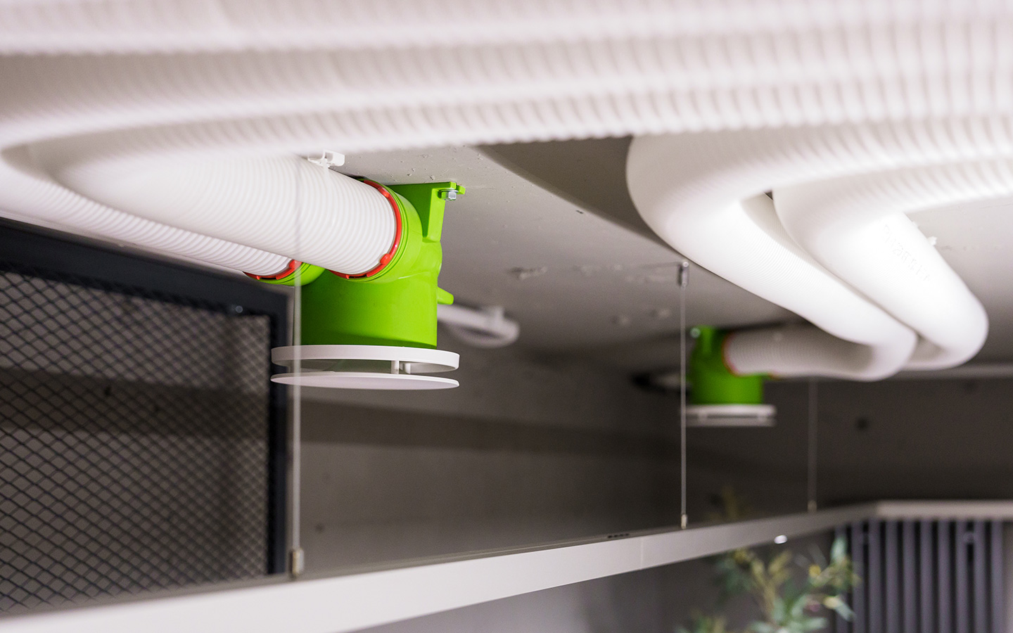 Воздуховод белого цвета. Сделан из 100% чиcтого (Virgin) полиэтилена без примесей. Гибкий, с гладким внутренним и гофрированным внешним слоями. Полиэтилен внутреннего слоя имеет антистатические, антибактериальные и антигрибковые добавки, которые предотвращают от образования пыли на поверхности и подавляют образование бактерий, грибка и плесени. Внешний слой имеет добавки, обеспечивающие защиту воздуховода от солнечного УФ-излучения. Не содержит галогены (фтор, хлор, бром). Антибактериальные добавки и сертификация компании Sanitized AG (Швейцария).