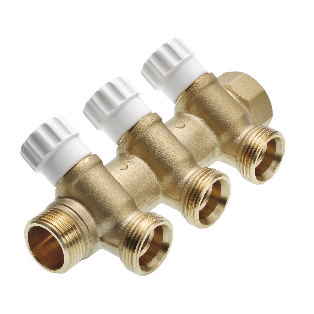 - Запорный коллектор из коррозионноустойчивой латуни (CW 617 N) для систем водоснабжения и отопления